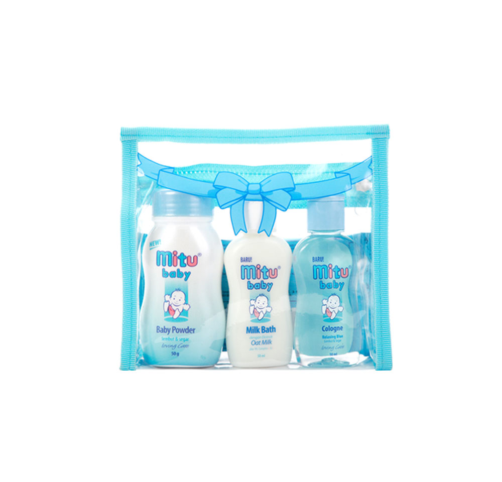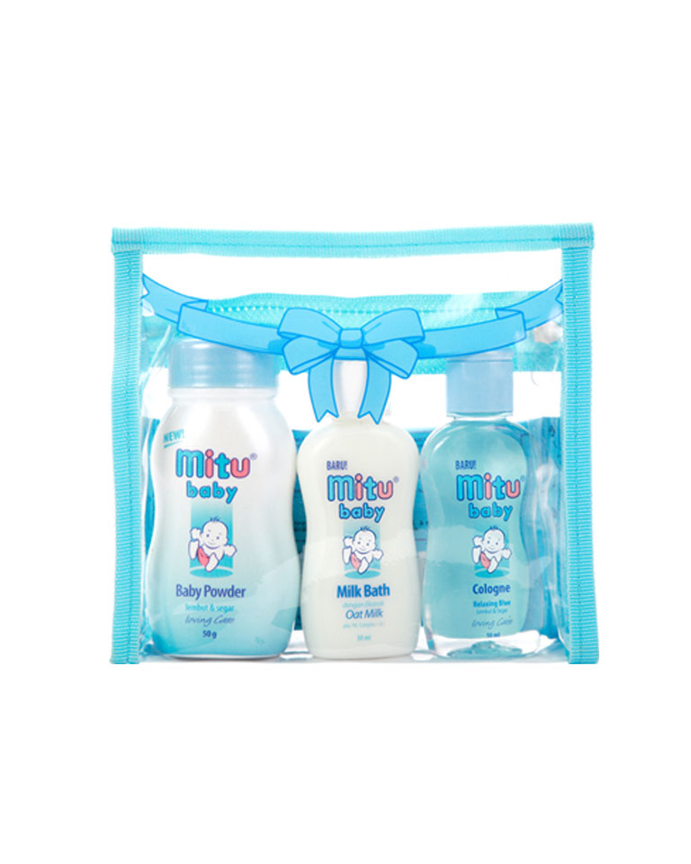 Mitu Baby Package is combination of Mitu Baby products such as Bath, Powder, Cologne/Hair Lotion, and Wipes.