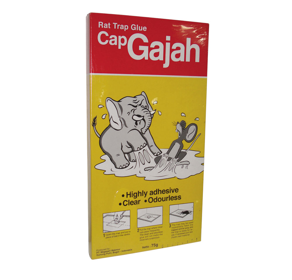 Inspired by the power of the elephant, Cap Gajah was designed as a non-toxic glue to effectively trap rats, mice and other household pests. Our product is a good combination of being efficacious and easy-to-use, and we are constantly working on new ways to improve it. Available in tube and disposal trap-board formats, Cap Gajah is a great solution for rodent control.