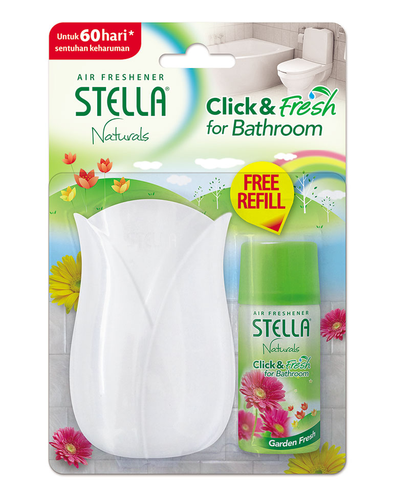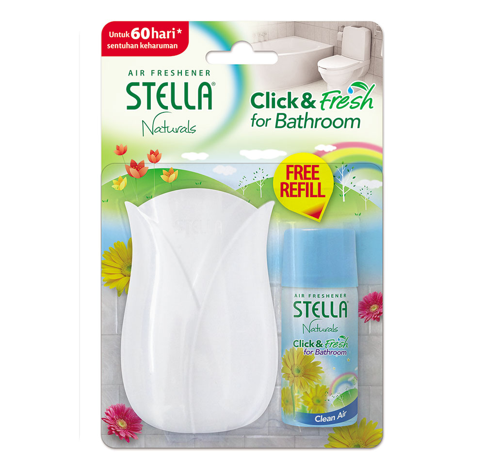Stella Click & Fresh is an indoor air freshener that’s easy to use at anytime. Contains the newest technology in air freshener, Odour Counteractant Material, effectively neutralize the air from odor, clean, and freshen the air with its refreshing and long lasting fragrance.